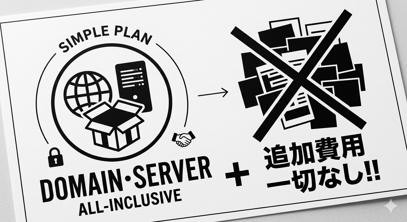 ドメイン・サーバー代も全てコミコミ。